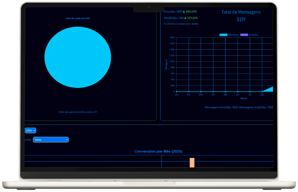 A nossa IA assume as conversas com leads e clientes, garantindo respostas rápidas, padronizadas e com a voz da sua marca.