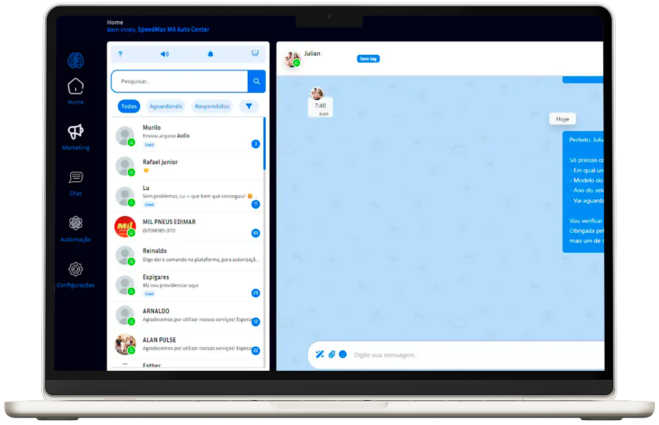 "O recurso de usuários ilimitados fez toda a diferença. Conseguimos padronizar o atendimento de toda a equipe no WhatsApp de forma rápida, sem a confusão de múltiplos celulares. O sistema é robusto e intuitivo."